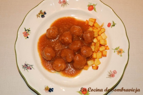 La albóndiga (también almóndiga, de uso vulgar según el DLE) es una bola de carne picada de vacuno, cerdo, pollo o a veces pescado, mezclada con huevos y diversos condimentos. Es un formato popular en todas las gastronomías del mundo. Esta es una receta sencilla con una salsa muy sabrosa. Recomendable el acompañamiento de patatas fritas en pequeños dados. Ideal para niños… y no tan niños!