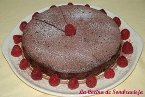 Engrasar un molde redondo de 22 cms. y forrarlo con papel de horno. Rellenar con la preparación, cubrir el molde con papel de aluminio y meter en horno a 170°C durante 40 min.