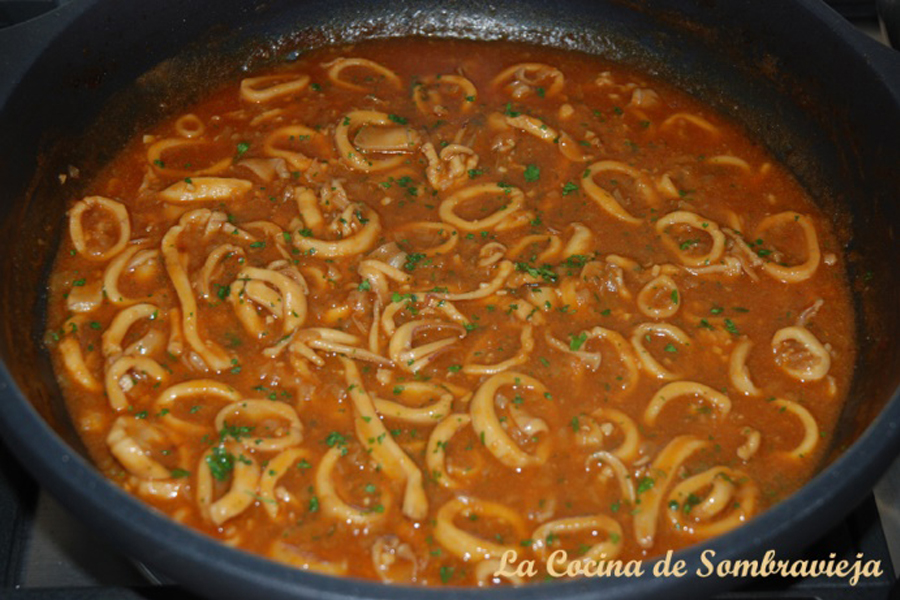 A pesar de la fama que tienen los calamares en su tinta, no hay que subestimar esta variante en salsa. La recomiendo. A muchos que la prueban les gusta más. La salsita que queda al final está para mojar pan…!