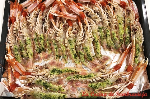 La cigala, cuyo nombre gallego tradicional fue originalmente langostino – cambiado posteriormente a cigala por razones comerciales-, es un crustáceo parecido a la langosta muy apreciado por su sabor. Generalmente elaboradas a la plancha, cocidas o al horno, tambén aparecen en numerosos platos de arroz, pasta, verduras o sopas. La receta que os sugiero aquí es mi favorita, con un irresistible atractivo visual y un resultado gastronómico excelso.