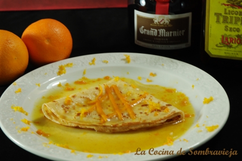 La característica de estas crêpes dulces es el beurre Suzette (mantequilla Suzette) cuya elaboración –mi favorita- describo en la receta. Sobre su orígen, indiscutidamente francés, se repite la historia—curiosamente frecuente en platos famosos- de su descubrimiento accidental, al incendiarse un licor de mandarina cercano mientras el maître las preparaba para el Príncipe de Gales en un hotel de la Costa Azul. Están riquísimas!