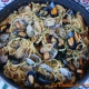 Finalmente, llevar a fuego una sartén con un poco de aceite y el ajo picado. Cuando éste empiece a bailar añadir un chorro de vino y dejar un minuto para que evapore el alcohol. Echar las almejas y tapar unos dos minutos hasta que se abran. Retirar del fuego y verter todo sobre el guiso, meneando un poco para que se integre con las pochas. Rectificar de sal. Servir, acompañando opcionalmente con piparras.