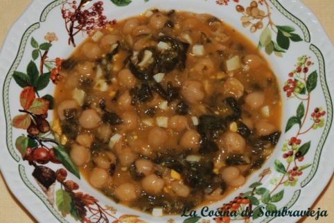 Los garbanzos tienen muchas propiedades beneficiosas para la salud, conteniendo gran cantidad de proteína vegetal y ácidos grasos insaturados. Están libres de gluten y son ricos en fibras. Sin embargo no es conveniente abusar de su consumo por su alto aporte de calorías, desaconsejable en dietas adelgazantes. Esta receta describe su preparación más cotidiana. Si se quiere cocinar la versión de vigilia sólo hay que añadir el bacalao al final.