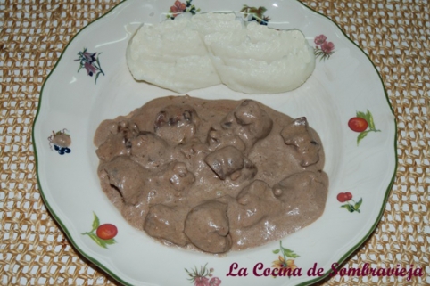 Servir los riñones con la salsa, acompañados, por ejemplo, por un puré de patatas o arroz blanco.